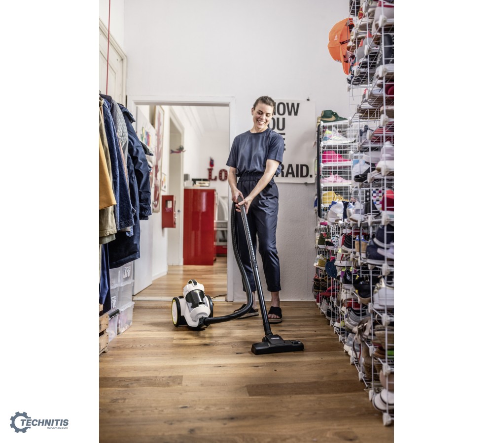 Kompaktiškas VC 3 daugiaciklonis dulkių siurblys leidžia jums siurbti nenaudojant dulkių maišelių, todėl sutaupote, kadangi nebereikia pirkti maišelių dulkėms talpinti. Permatoma šiukšlių talpa leidžia jums iš karto pamatyti, kada ji prisipildo ir kada ją reikia ištuštinti. Be to, su šiais įrenginiais išvengiama nemalonių kvapų, kuriuos gali skleisti dulkių siurbliai su maišeliais - o tai įvertins kiekvienas. Dėl kompaktiško dydžio, VC 3 puikiai tinka daugeliui butų ar mažesnių namų. Komplekte taip pat yra antgalis plyšiams ir šepetys baldams, todėl jūs kruopščiai išvalysite ir siaurus tarpus, ir jautrius paviršius lygiai taip pat kaip ir grindis ar kilimus. HEPA filtro dėka net ir mažiausi nešvarumai, tokie kaip žiedadulkės ar alergenų dalelės, yra patikimai susiurbiami