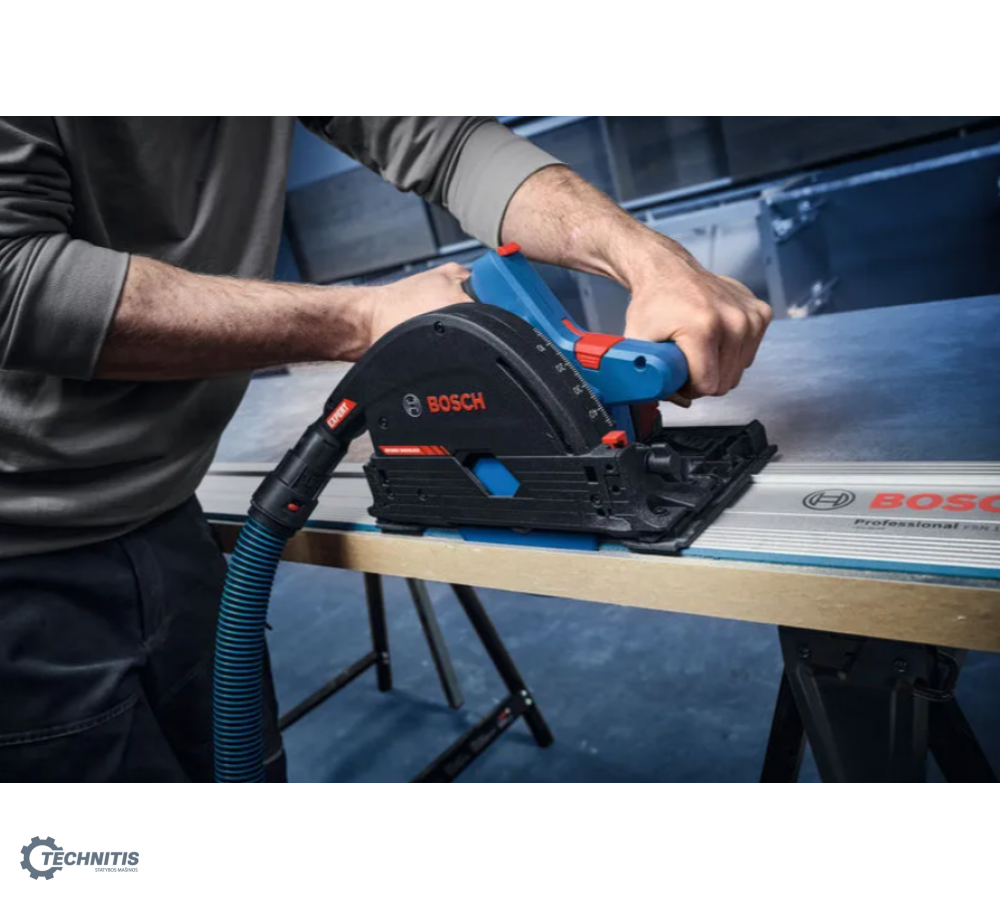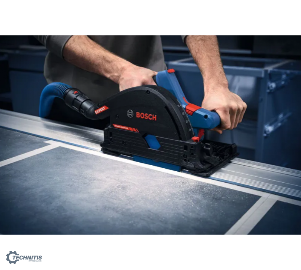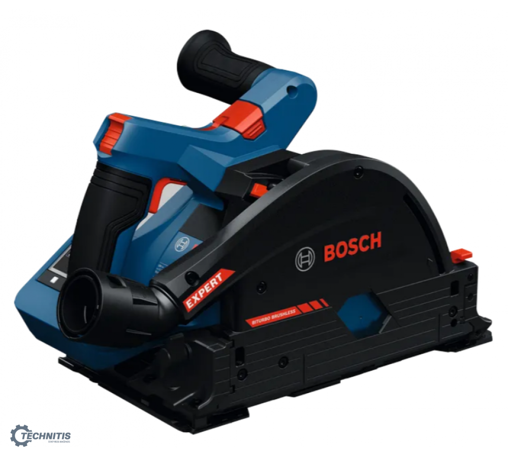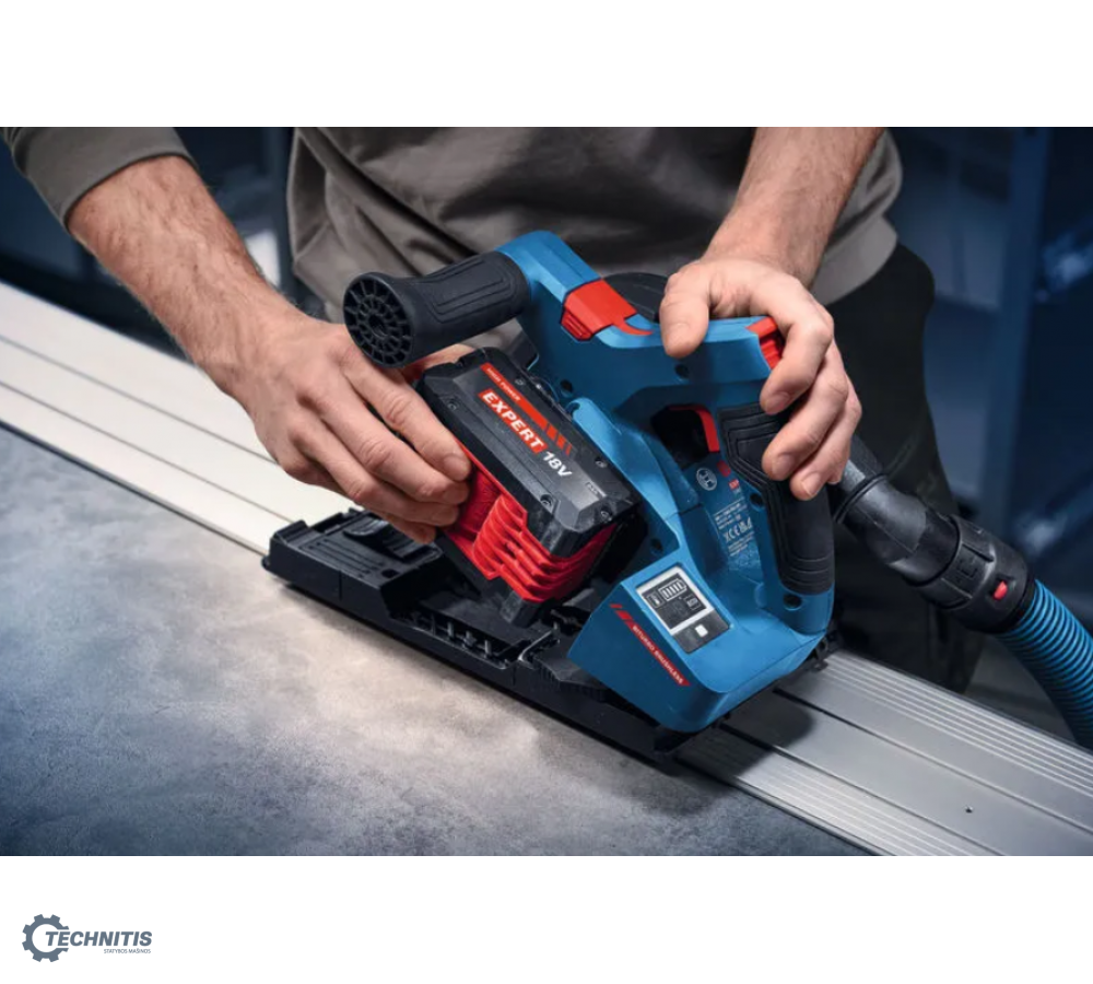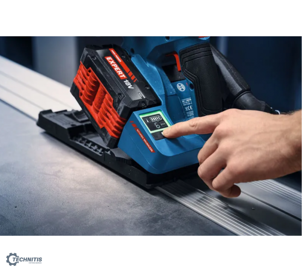 EXPERT EXKT18V-52G diskinis įleidžiamasis pjūklas pasižymi itin kompaktiška konstrukcija, leidžiančia pasiekti minimalų atstumą iki sienos ir atlikti pjūvius vos 10 mm atstumu nuo sienos. „BITURBO Brushless“ puikių charakteristikų variklis ir pavaros sistema sukurti taip, kad būtų pasiekta išskirtinė galia naudojant su EXPERT akumuliatoriais. Šis kompaktiškas diskinis įleidžiamasis pjūklas naudoja vos vieną 18V akumuliatorių, todėl užtikrinamas puikus mobilumas. Integruotas „Click and Clean“ adapteris skirtas „Bosch“ dulkių surinkimo sprendimams. Jis gali būti lengvai manevruojamas ir pasuktas 360 laipsnių kampu. EXPERT EXKT18V-52G yra suderinamas su mūsų puikiomis BOSCH FSN kreipiamosiomis liniuotėmis ir kitomis įprastomis sistemomis. Patogi sąsaja paprastam nustatymų keitimui: Greičio pasirinkimas, režimo pasirinkimas (pvz.: ECO režimas ilgesniam veikimo laikui su viena akumuliatoriaus įkrova), taip pat akumuliatoriaus įkrovimo ir įrenginio būsenos indikatoriai, pvz.: apsaugos nuo perkrovos.
