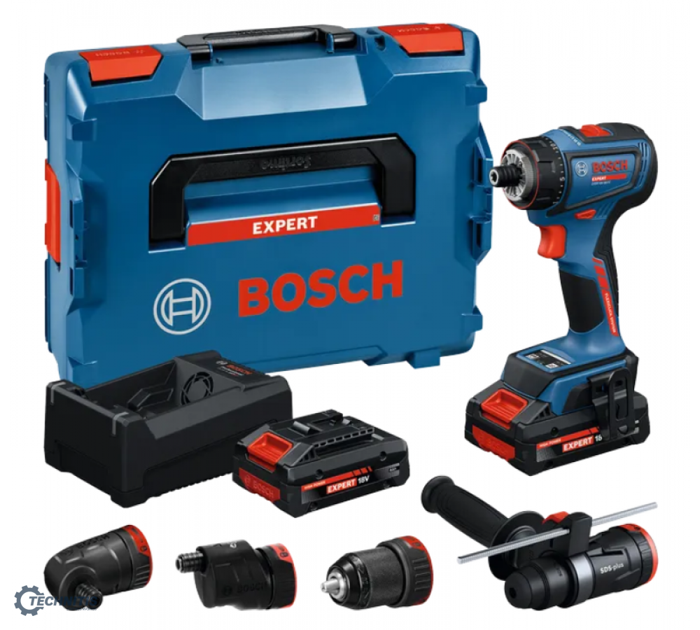 Galingas EXPERT EXSR18V-90FC suteikia šeši viename universalumą dėl lengvai keičiamų gręžimui ir sraigtų sukimui skirtų priedų. Jis yra universalios „Bosch Professional FlexiClick“ sistemos dalis, pasirengusi įveikti įvairius iššūkius darbo vietoje. Unikalus kalimo priedas GFA 18-H paverčia įrankį į „SDS Plus“ perforatorių, skirtą gręžti betone skyles iki Ø 10 mm. Įrankis turi pažangią naudotojo apsaugą: „KickBack Control“ sumažina traumų pavojų įstrigus grąžtams. Kai pasiekiamas nustatytas sukimo momento lygis, „Precision Clutch“ stabdo sukimą. Abi šias funkcijas galima įjungti ir išjungti. „FlexiClick“ mažina įrangos, kurią reikia neštis į darbo vietą, svorį. „FlexiClick“ priedai gali pakeisti specialius retai naudojamus įrankius. „Bosch Professional FlexiClick System“ – idealiai pritaikyta profesionaliam darbui.