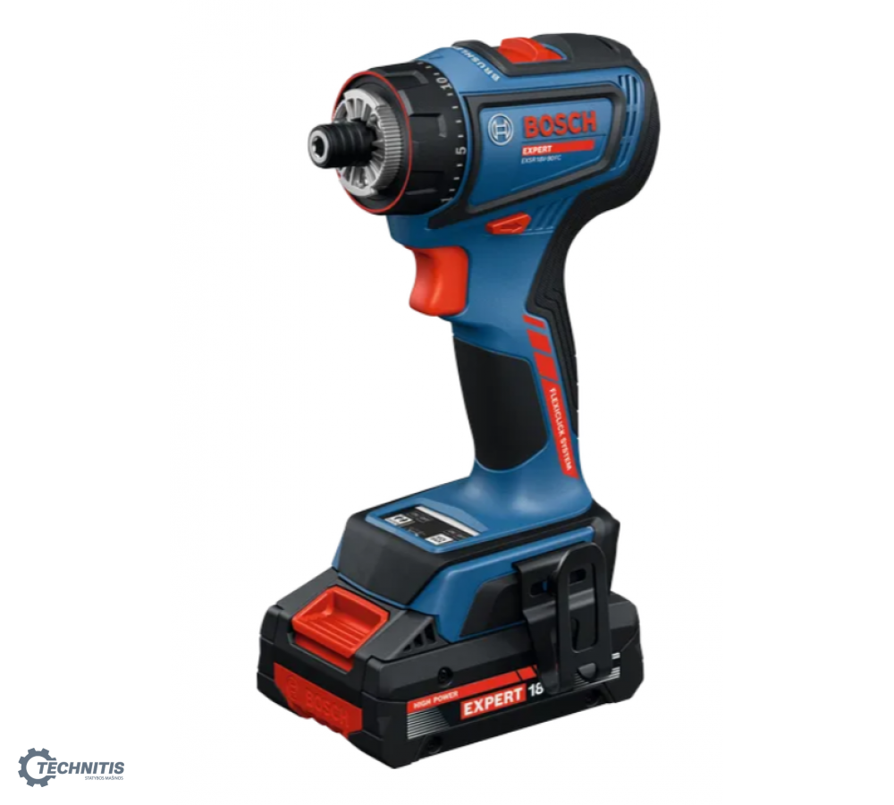 Galingas EXPERT EXSR18V-90FC suteikia šeši viename universalumą dėl lengvai keičiamų gręžimui ir sraigtų sukimui skirtų priedų. Jis yra universalios „Bosch Professional FlexiClick“ sistemos dalis, pasirengusi įveikti įvairius iššūkius darbo vietoje. Unikalus kalimo priedas GFA 18-H paverčia įrankį į „SDS Plus“ perforatorių, skirtą gręžti betone skyles iki Ø 10 mm. Įrankis turi pažangią naudotojo apsaugą: „KickBack Control“ sumažina traumų pavojų įstrigus grąžtams. Kai pasiekiamas nustatytas sukimo momento lygis, „Precision Clutch“ stabdo sukimą. Abi šias funkcijas galima įjungti ir išjungti. „FlexiClick“ mažina įrangos, kurią reikia neštis į darbo vietą, svorį. „FlexiClick“ priedai gali pakeisti specialius retai naudojamus įrankius. „Bosch Professional FlexiClick System“ – idealiai pritaikyta profesionaliam darbui.