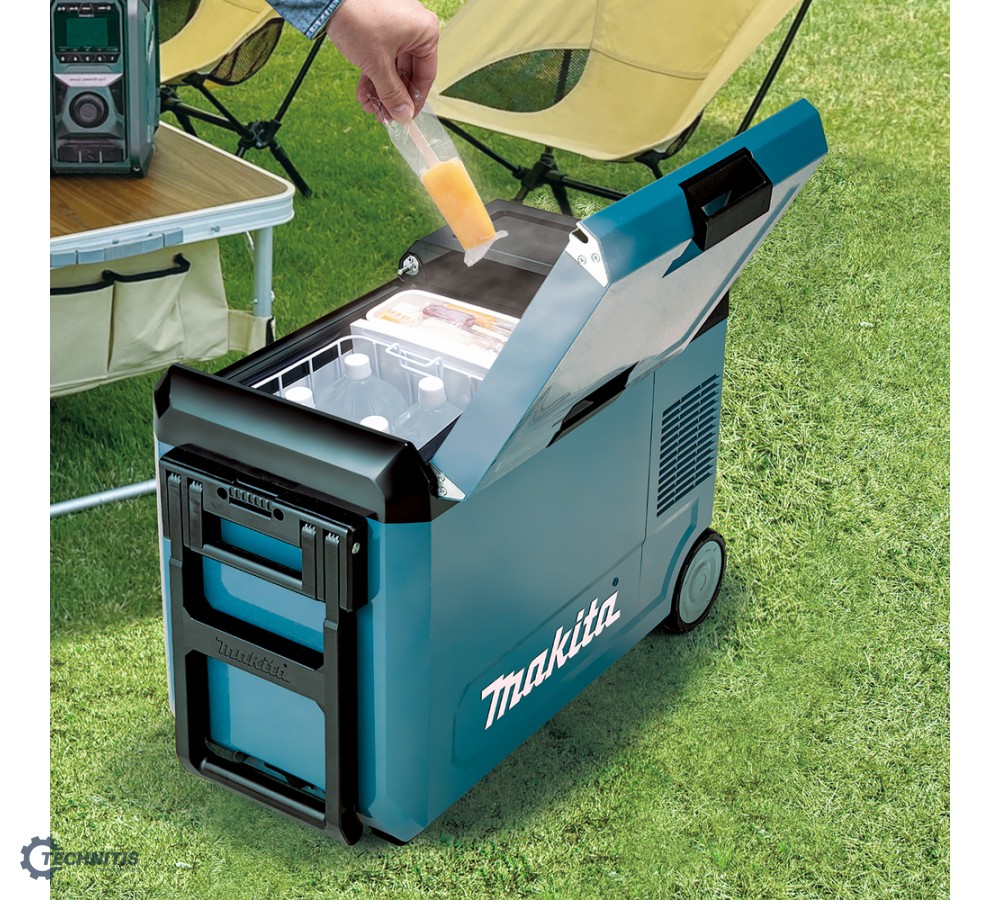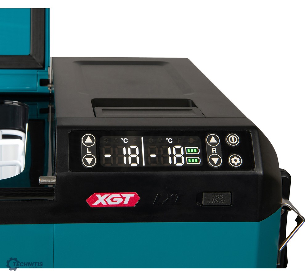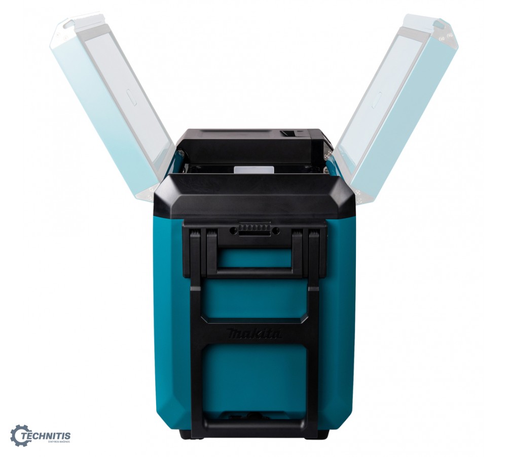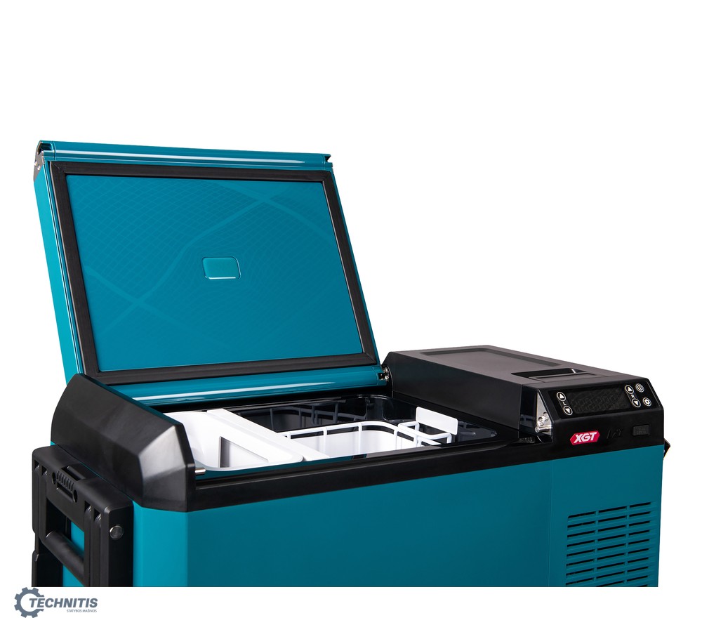 CCW004G 29L talpos akumuliatorinis maisto šaldiklis-šaldytuvas-šildytuvas veikia nuo keturių skirtingų šaltinių: 40Vmax XGT® akumuliatoriaus, 18V LXT® akumuliatoriaus, DC automobilinės 12/24V srovės (per DC adapterį), AC nuolatinės įtampos (per AC adapterį). Su pertvaros plokšte šaldiklis gali veikti dviejų kamerų režimu, tokiu būdu kiekvienoje kameroje gali būti nustatytas skirtingų temperatūtų režimas 30°C skirtumu. Naudotojo patogumui, šaldiklio dangtis atsidaro iš abiejų pusių ir gali būti lengvai nuimamas.