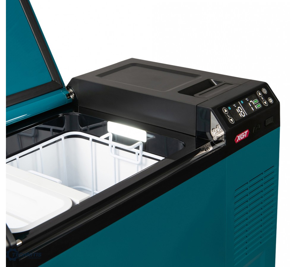 Akumuliatorinis maisto šaldiklis-šaldytuvas-šildytuvas, galintis veikti dviejų kamerų režimu. Šaldo iki -18°C, šildo iki +60°