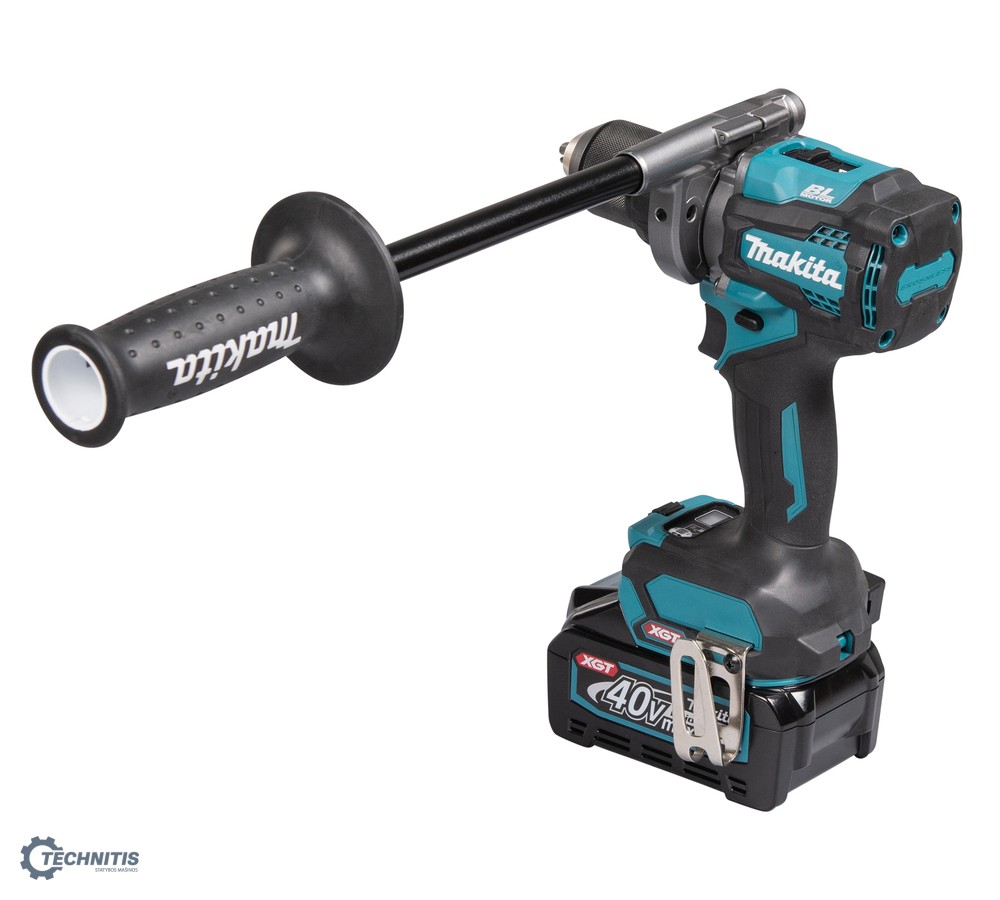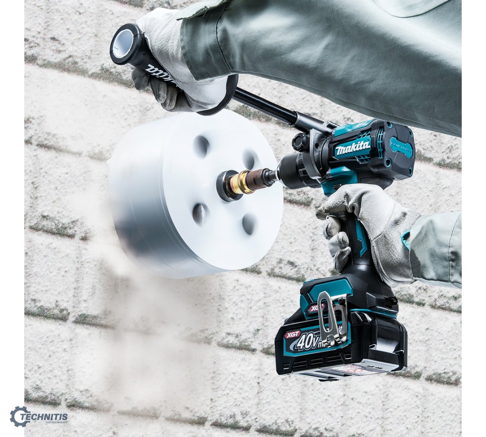 DF001G - galingas bešepetėlinis gręžtuvas-suktuvas, skirtas profesionaliam naudojimui, kai reikia prisukti ir gręžti naudojant du skirtingus galios parametrus. Gręžtuvo didžiausias sukimo momentas yra 140 / 68 Nm, todėl tai geriausias pasirinkimas didelės galios reikalavimus keliantiems darbams. DF001G turi 41 elektroninę sukimo sankabos padėtį. Sankabos padėtys lengvai reguliuojamos ratuko su skaitmeniniu ekranu pagalba. Elektroninė sankaba leidžia pasiekti platesnį sukimo momento diapazoną, nei naudojant mechaninę sankabą. AFT® (Active Feedback Sensing Technology) atatrankos kontrolė apsaugo nuo galimų sužalojimų automatiškai išjungiant variklį, jeigu staiga, dėl nenumatytų priežasčių sumažėja apsukos. DF001G yra naujosios XGT® gaminių serijos dalis. Šie įrankiai sukurti pramoninių reikalavimų, keliamų didelio galingumo akumuliatoriniams įrankiams įgyvendinimui. XGT® technologija įrankiams suteikia ir kitų privalumų, tokių kaip skaitmenis ryšys tarp akumuliatoriaus ir paties įrankio, bei - didesnis patvarumas. DF001G ir kiti XGT® serijos gaminiai yra optimalūs įrankiai sunkiam darbui, atitinkantys dabartinius ir ateities poreikius.