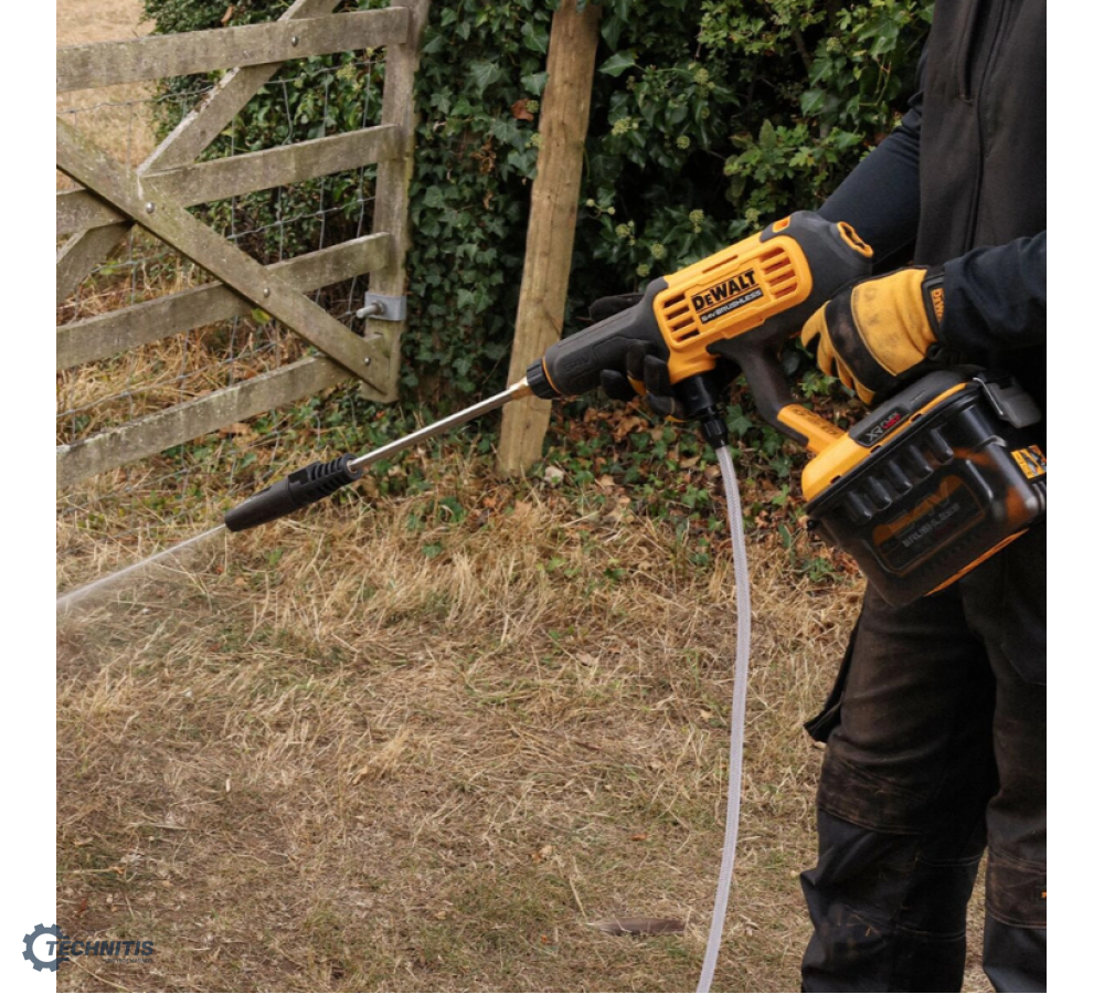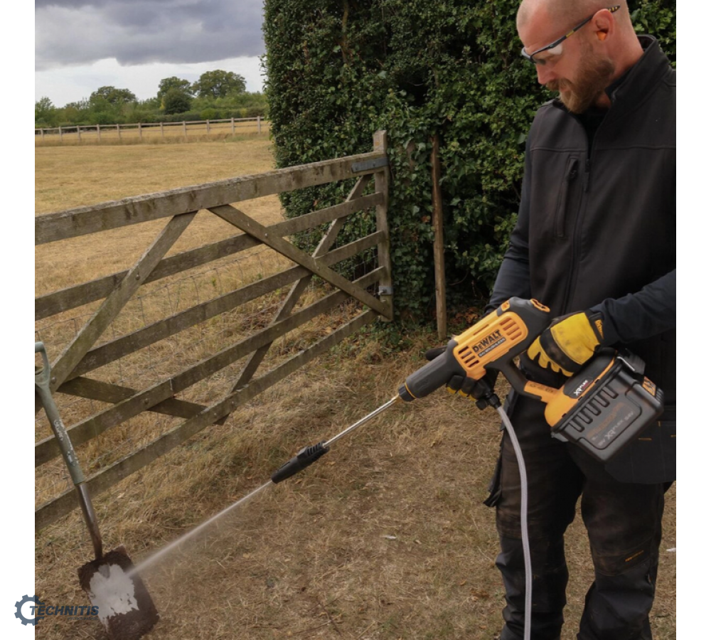 - Akumuliatorinis aukšto slėgio plovimo įrenginys su bešepetėliniu varikliu, puikiai tinka plauti įvairiems paviršiams, tvoroms, langams, takams, terasoms