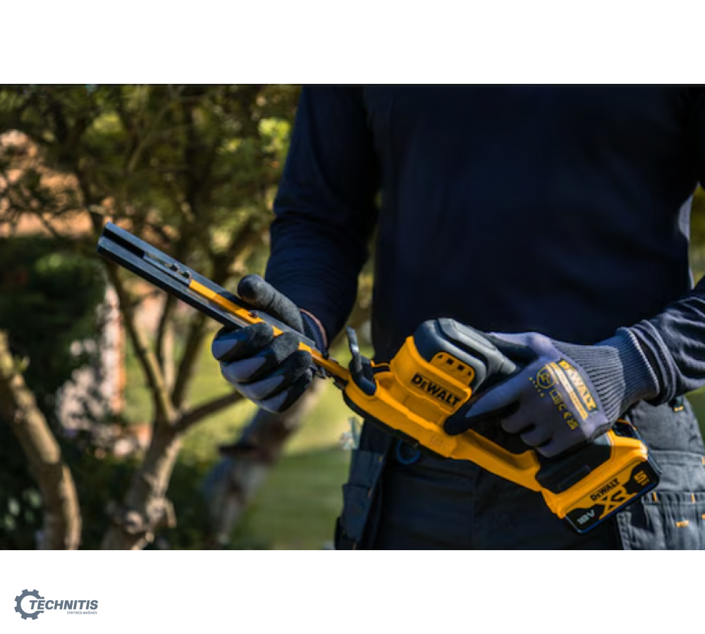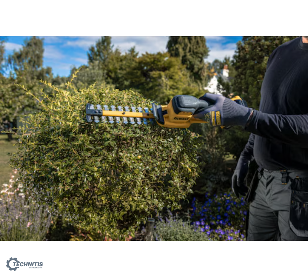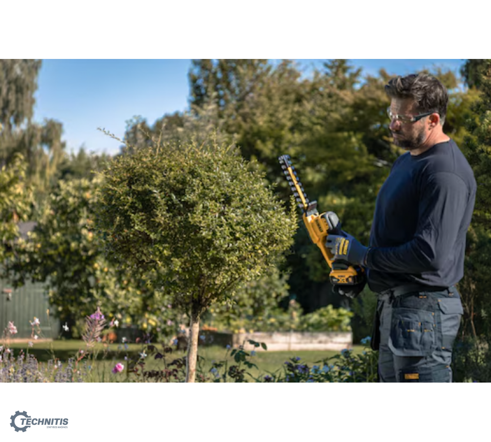 - 20 cm lazeriu pjauti ašmenys užtikrina greitą ir tikslų gyvatvorių bei krūmų karpymą – net sunkiai pasiekiamose vietose